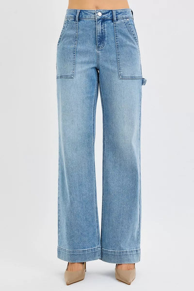 The high-rise straight leg jeans with front pockets are a classic and versatile staple for a chic and casual look. The high rise waist provides a flattering fit that accentuates the waistline and elongates the legs. With front pockets adding a functional and stylish touch, these jeans offer both practicality and fashion appeal. The straight leg cut is timeless and easy to style with a variety of tops and shoes. Pair these jeans with a tucked-in blouse and heels for a polished ensemble, or opt for a casual look with a t-shirt and sneakers for everyday wear.