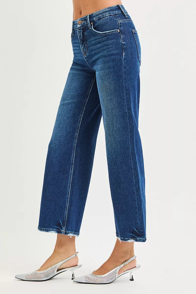 These high-rise crop wide leg jeans feature tummy control and 4-way stretch for a flattering and comfortable fit. The wide leg silhouette adds a trendy and chic flair to the classic denim style. With tummy control technology, these jeans offer support and confidence. Elevate your denim collection with these stylish and figure-flattering high-rise crop wide leg jeans. Stay comfortable and on-trend with this versatile and fashion-forward denim piece.